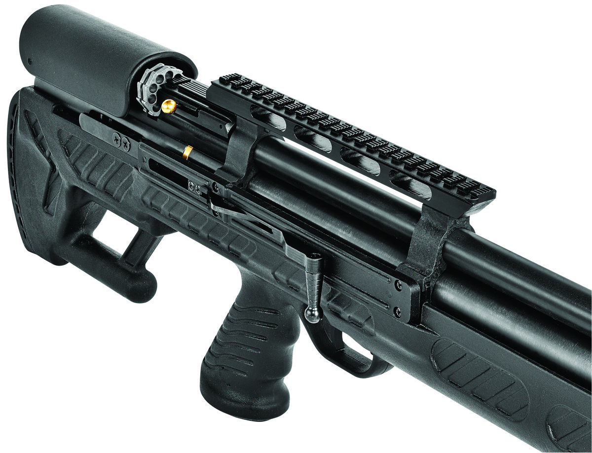 BULLBOSS mocna wiatrówka typu bullpup firmy Hatsan Arms. Dzięki zastosowaniu układu bezkolbowego, uzyskano kompaktowe wymiary karabinu, przy zachowaniu normalnej długości lufy gwarantującej doskonałą celność oraz typowy dla tej konstrukcji zmniejszony podrzut.