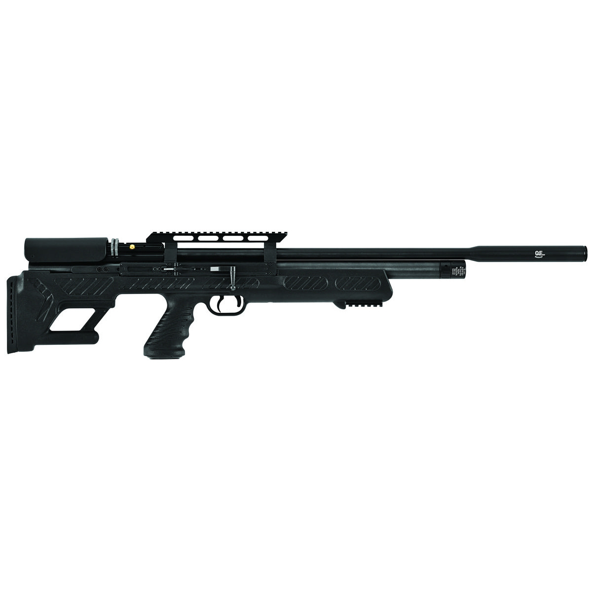 Lufa - precyzyjna gwintowana lufa o długości 23" (585 mm), Hatsan QE (QuietEnergy) zakończona integralnym tłumikiem dźwięku redukującym o -50% odgłos wystrzału. Zwężenie u wylotu lufy (zwane czokiem) poprawia celność karabinka, zwłaszcza przy strzelaniu na dużych dystansach. Jakość wykonania lufy wpływa na celność karabinu, jest jednym z najważniejszych elementów każdej broni / wiatrówki.