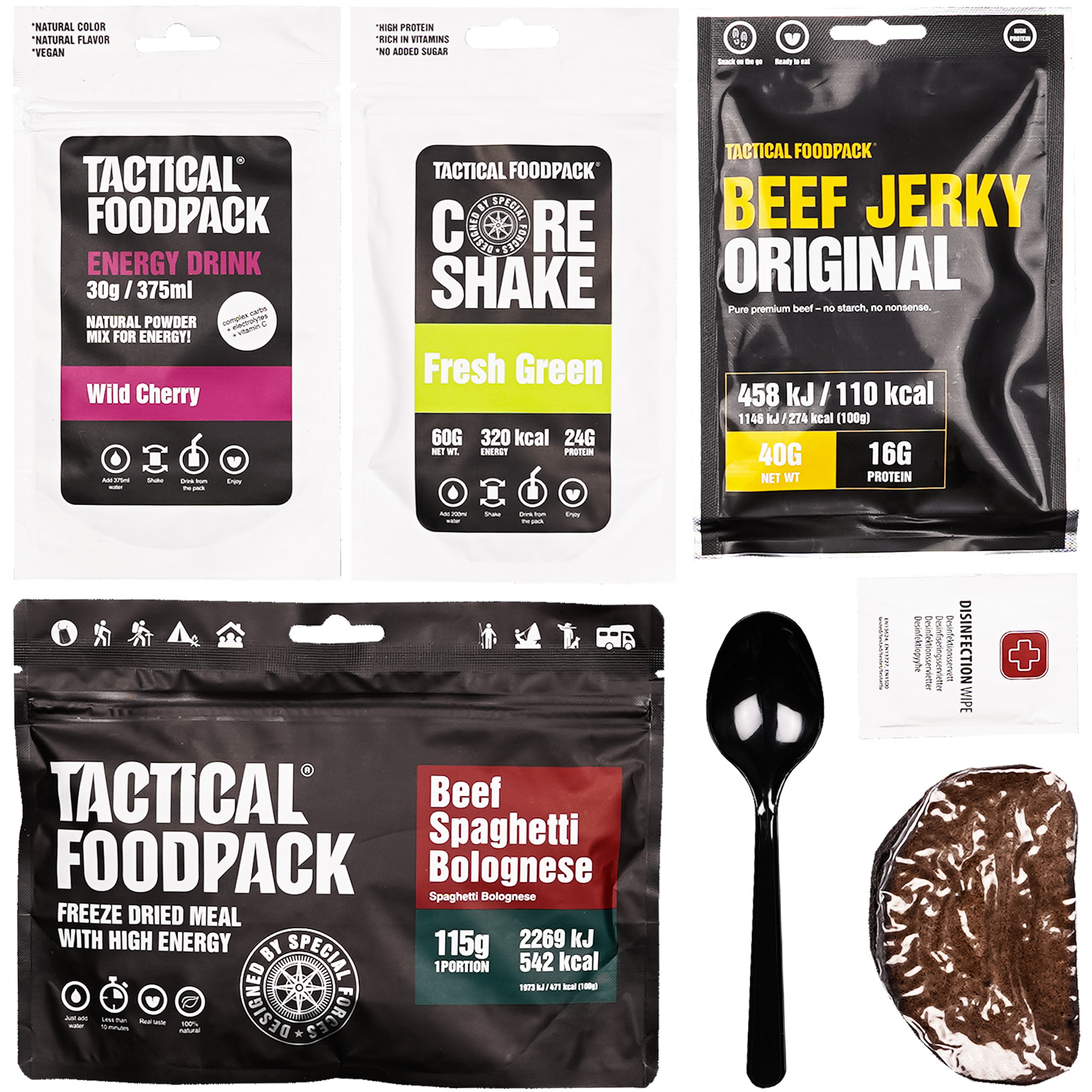 Zestaw Tactical FoodPack Ration Echo to rozwiązanie stworzone z myślą o osobach, które doceniają pełnowartościowe posiłki nawet w trudnych warunkach. Składający się z liofilizatu, napoju białkowego i izotonicznego, suszonej wołowiny oraz chleba zestaw dostarcza 1348 kalorii, dzięki czemu masz pewność, że Twoje zapotrzebowanie energetyczne zostanie zaspokojone podczas długich wypraw. Każdy element zestawu jest zapakowany w praktyczne opakowanie, które możesz łatwo ponownie zamknąć, co sprawia, że jest to idealne rozwiązanie na Twoją następną przygodę na szlaku.