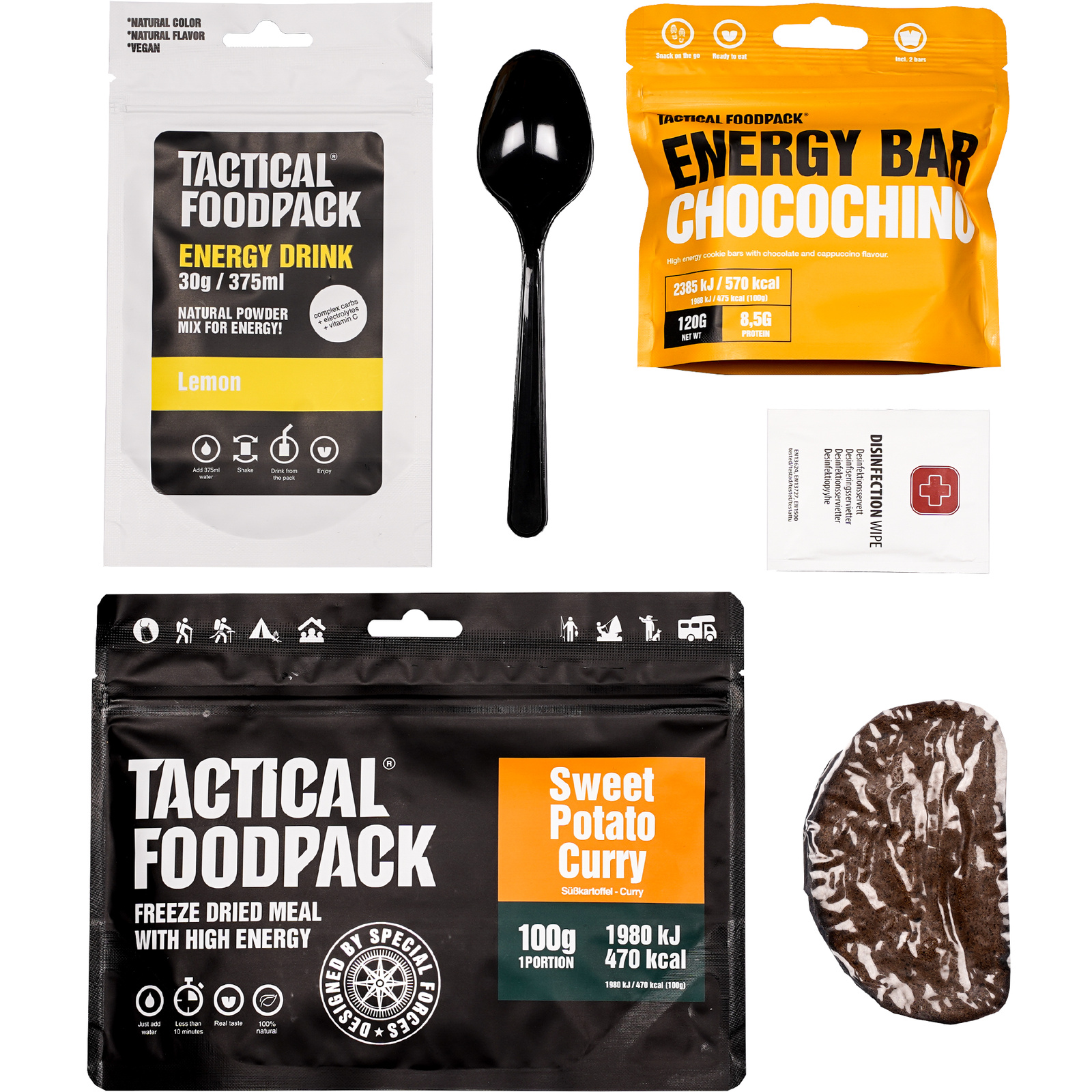 Tactical FoodPack Ration Vegan 1 meal to idealny zestaw dla miłośników wegańskich posiłków, dostosowany do potrzeb aktywnych osób. Ten pełnowartościowy posiłek wegański zawiera liofilizat, baton energetyczny, izotoniczny napój i chrupiący chleb. Wszystko to dostarcza prawie 1376 kalorii energii, a wszystkie składniki są przechowywane w wygodnym opakowaniu.